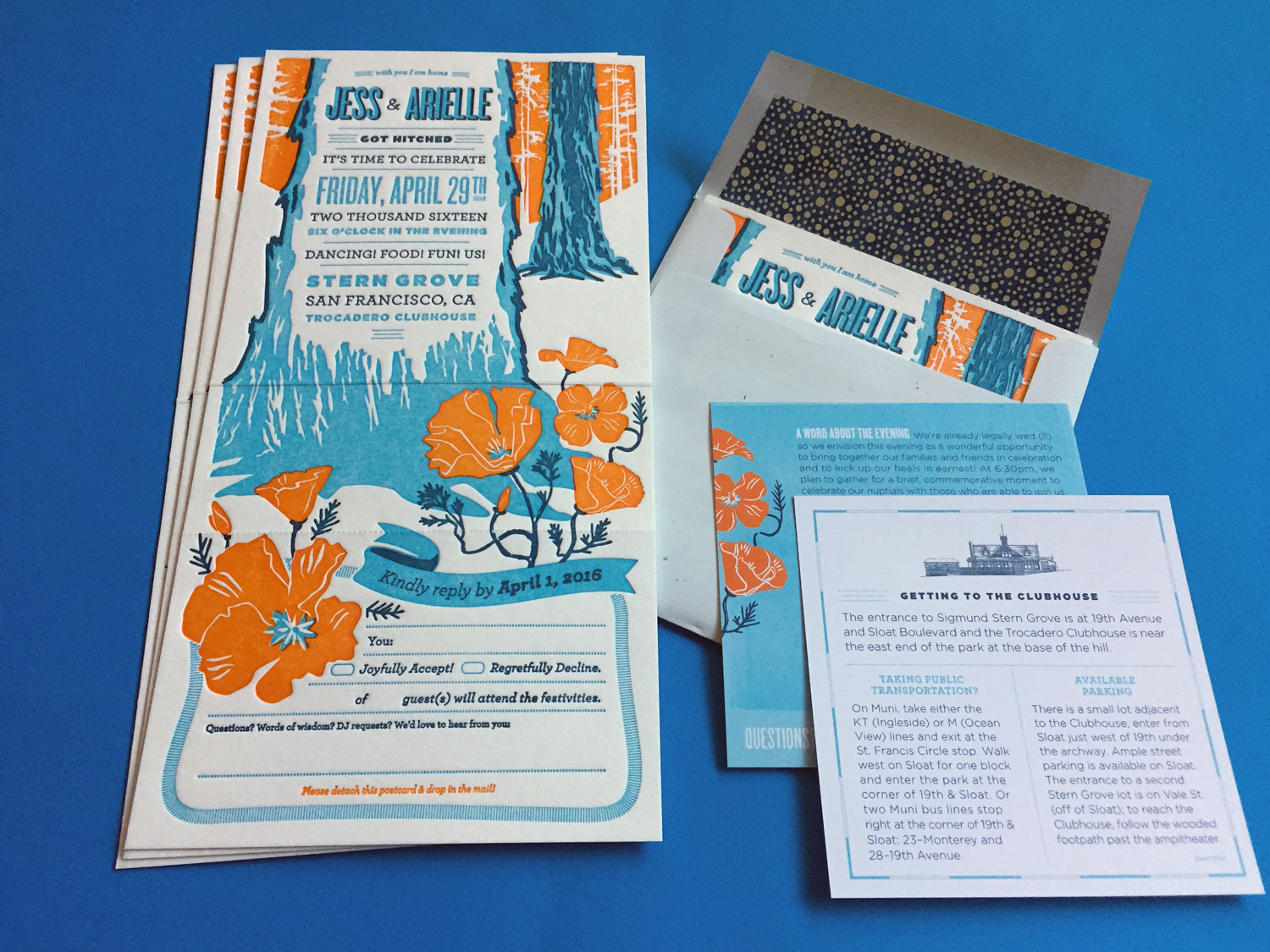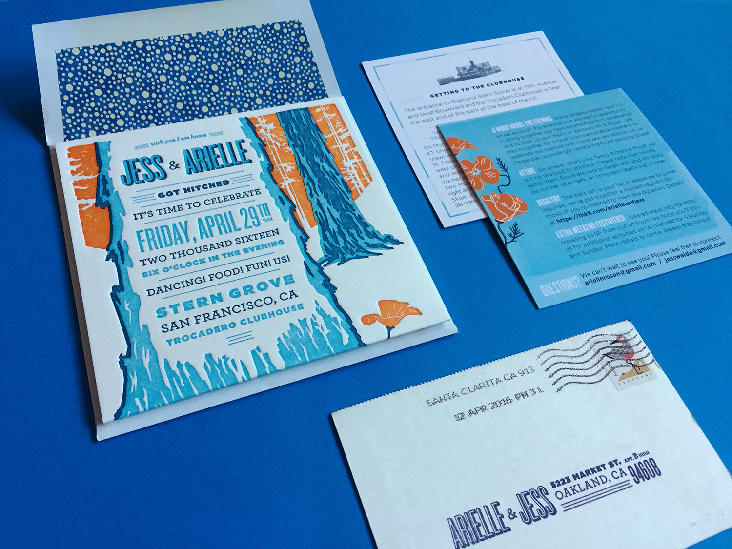 Custom wedding reception invitation with accompanying support materials, mailed to friends and family in advance of our big day.